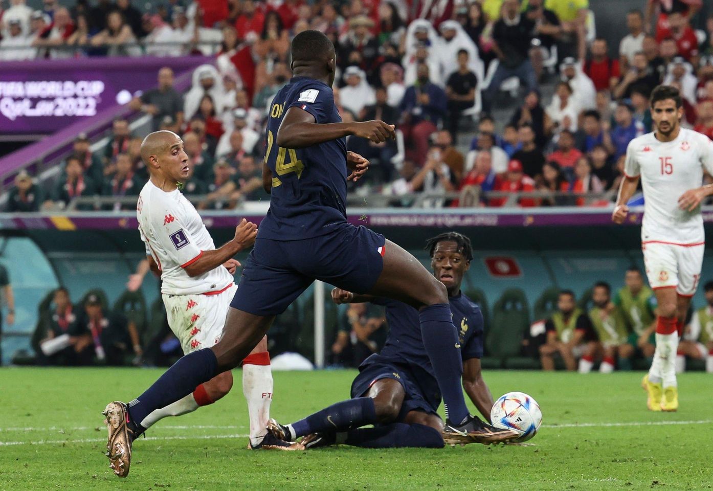 وبعدما حسمت فرنسا تأهلها بانتصارين متتاليين على أستراليا (2-1) والدانمارك (2-1)، تعثر المدرب ديدييه ديشان ورجاله أمام المنتخب التونسي الذي آمن بحظوظه في بلوغ الدور ثمن النهائي للمرة الأولى في تاريخه، وخرج فائزا (1ـ0) دون أن يحقق مبتغاه.
