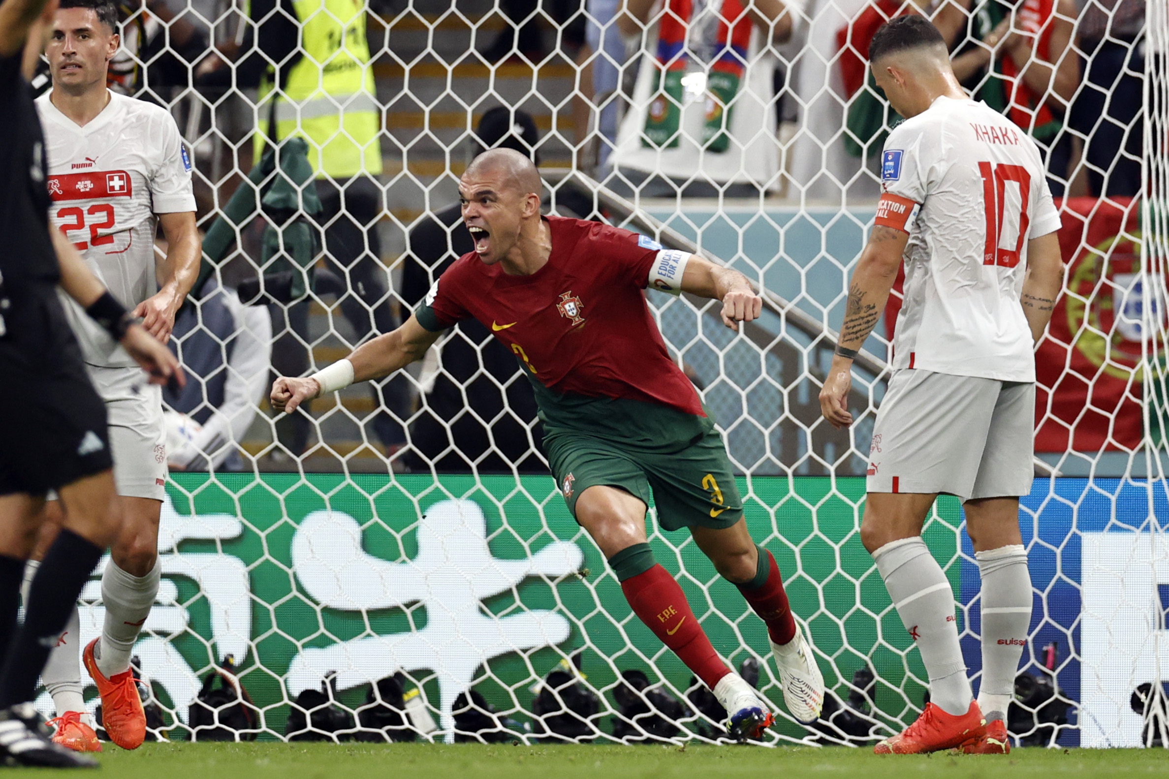 وسجل الهدف الأول اللاعب راموس في الدقيقة 18 من زمن المباراة من تسديدة قوية سكنت الشباك السويسرية، وعزز اللاعب بيبي تقدم البرتغال بالهدف الثاني في الدقيقة 34 من زمن الشوط الأول للمباراة.