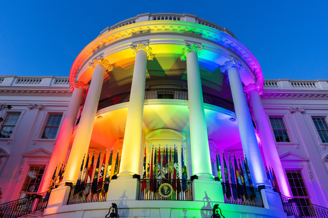 تضامن البيت الأبيض مع المثليين عبر إضاءة البيت الأبيض بعلم قوس قزح المشهور به، بعد ساعات من توقيع الرئيس الأميركي جو بايدن رسميا على قانون يحمي زواج المثليين.