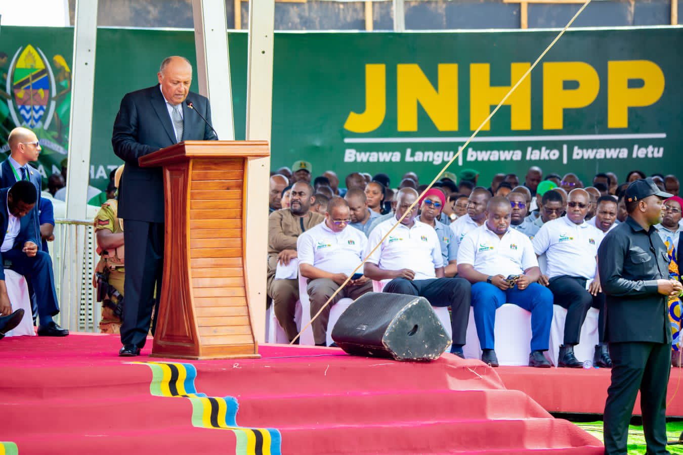 أضاف شكري، خلال كلمته في تنزانيا، خلال المشاركة في الاحتفال ببدء ملء بحيرة سد نيريري على نهر روفيجي، أن المشروع بُني بسواعد مصرية وتنزانية بإجمالي تكلفة نحو 2.9 مليار دولار، ومحطة توليد للطاقة الكهرومائية بقدرة 2115 ميجاوات، مؤكدًا أن المشروع سيكون له دور مهم في حياة الشعب التنزاني.