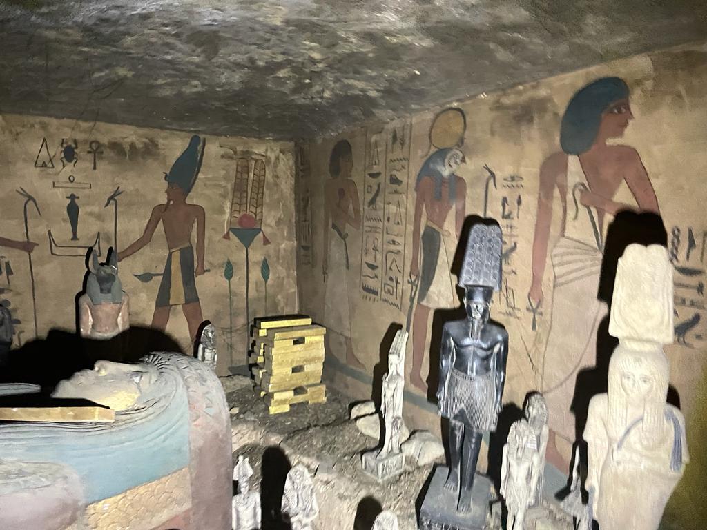 كشفت اللجنة أن الرسومات الموجودة بها مرسومة من الكتب الفرعونية، وبداخلها كمية من التماثيل المصنوعة يدويًا وتابوت من الجبس وعليها نقوش وأشكال تشبه تماثيل الحضارة المصرية القديمة ولكنها مزيفة بالكامل.