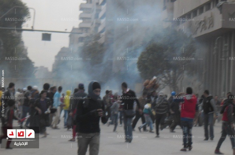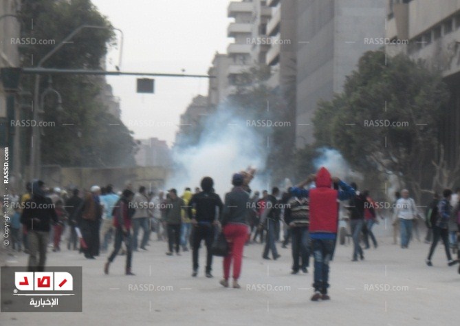 أطلقت قوات الأمن المتواجدة بشارع القصر العيني العديد من القنابل المسيلة للدموع لإبعاد المتظاهرين اللذين تجمعوا خلف الجدار في...