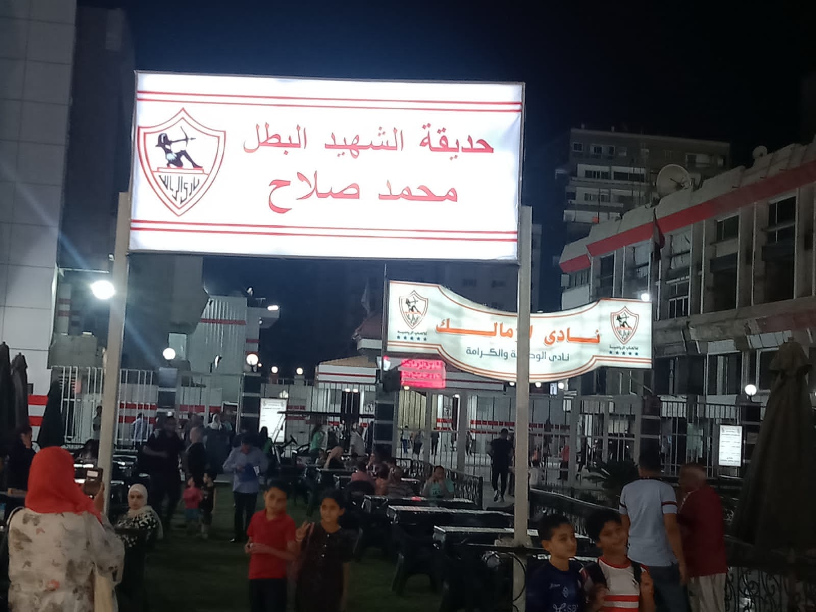 وتداول رواد مواقع التواصل الاجتماعي، صورة لافتة تحمل اسم الشهيد محمد صلاح على إحدى حدائق النادي، والتي لقت تفاعلا كبيرا من المستخدمين.