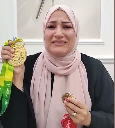 وعرضت والدة البطل المصري الميدالية الذهبية لبطولة العالم للشباب التي توج بها في أندونيسيا للبيع احتجاجًا على المعاملة غير اللائقة التي تعرض لها .
