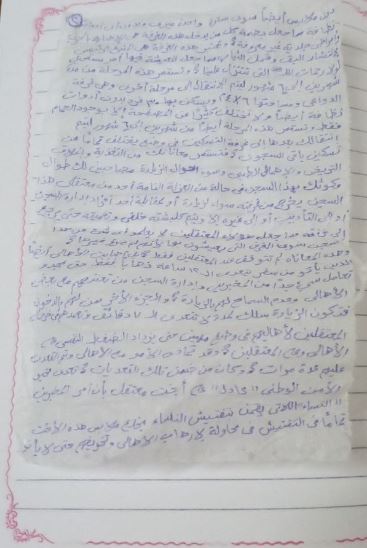 وقات زوجة أحد المعتقلين:” أنا زوجي كان في سجن برج العرب يوم ٣٠ ابريل روحت أزوره بعدها لاقيته في مستشفى السجن وطبعا هناك ممنوع الزيارة بس عرفت إن حالته حرجة”.