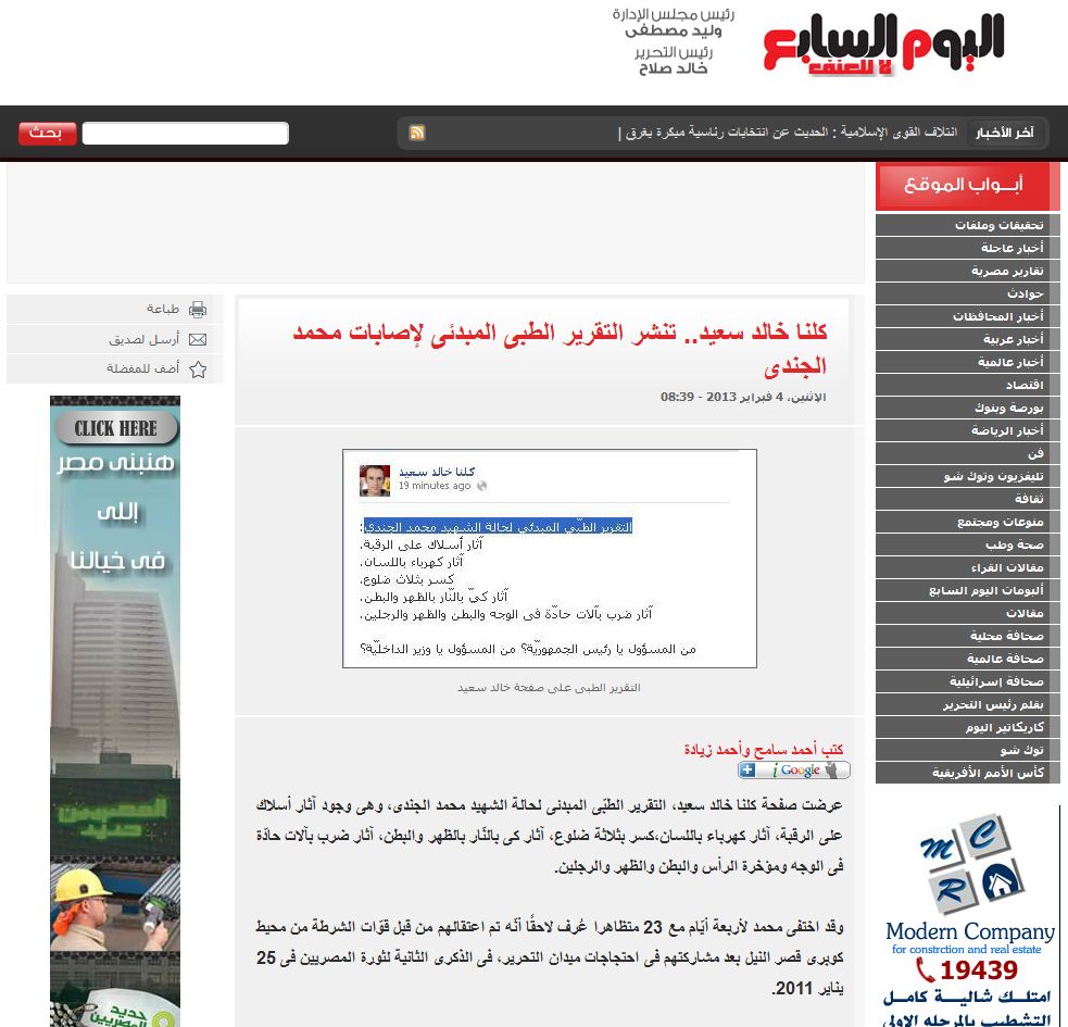 التقرير المزيف علي صفحة كلنا خالد سعيد
