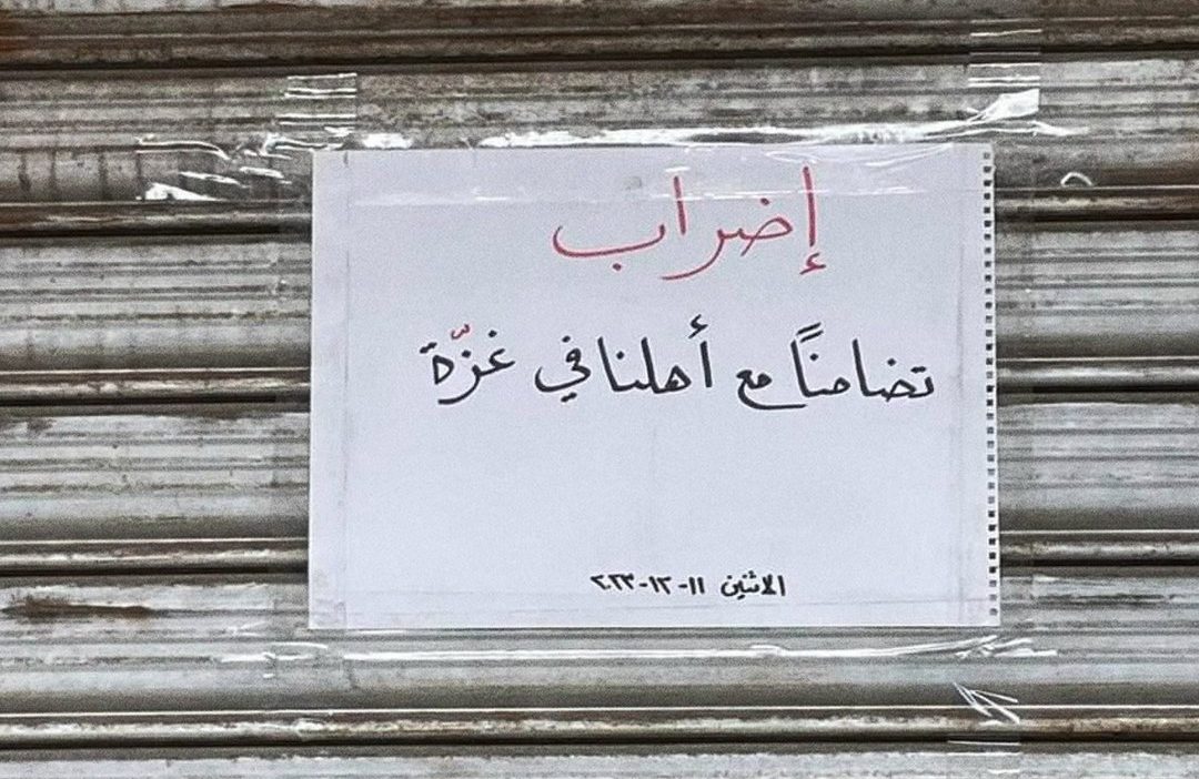 عم إضراب شامل جميع محافظات الضفة الغربية المحتلة ولبنان والأردن، الإثنين 11 ديسمبر 2023، تنديدا بعدوان الاحتلال على قطاع غزة.