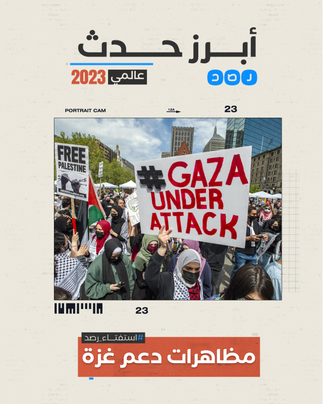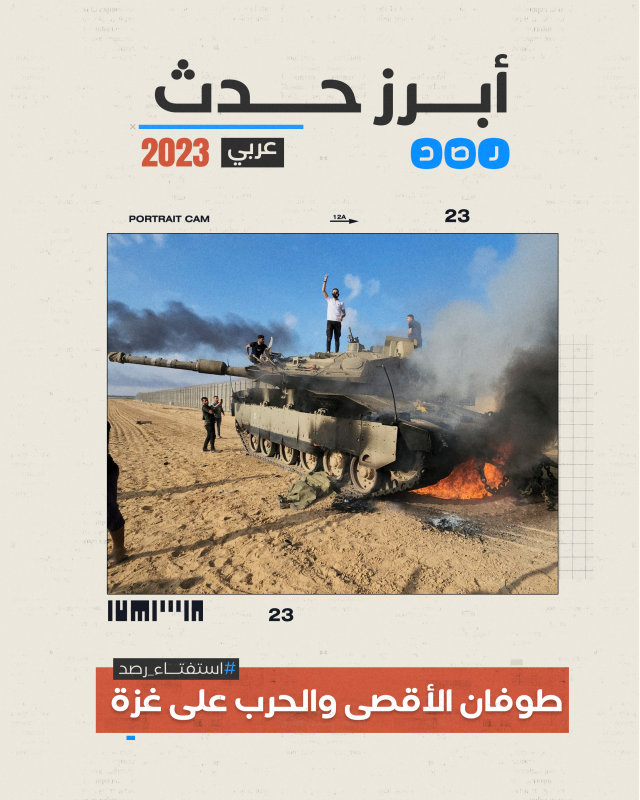 وفي إجماع للمشاركين في الاستفتاء، احتلت عملية طوفان الأقصى والحرب على غزة كأبرز حدث عربي خلال عام 2023 بنسبة تصويت بلغت 98%.