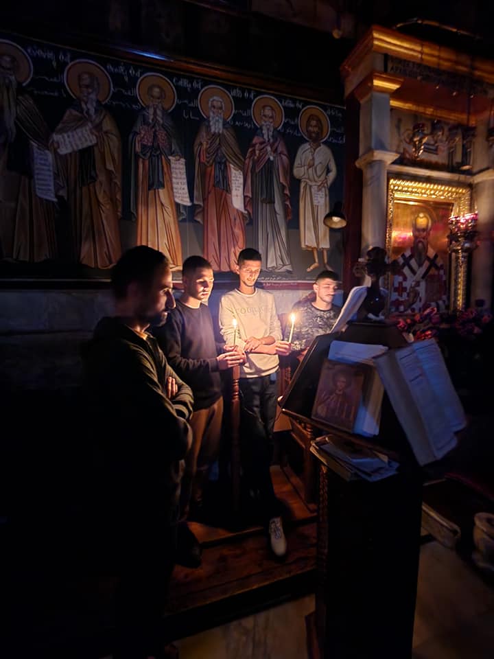 في كنيسة القديس “برفيريوس” بمدينة غزة التي شهدت دمارا واسعا، يصلي عدد من النازحين المسيحيين الذي وجدوا في هذا المكان ملجأ يحميهم من الغارات العنيفة، لأجل “انتهاء الحرب”.