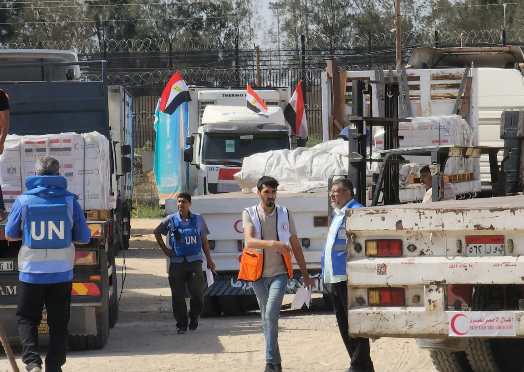 وأضافت: “استلمت طواقم جمعية الهلال الأحمر الفلسطيني 6947 شاحنة من الهلال الأحمر المصري عبر معبر رفح، تحتوي على طعام وماء ومساعدات إغاثية ومستلزمات طبية وأدوية”.