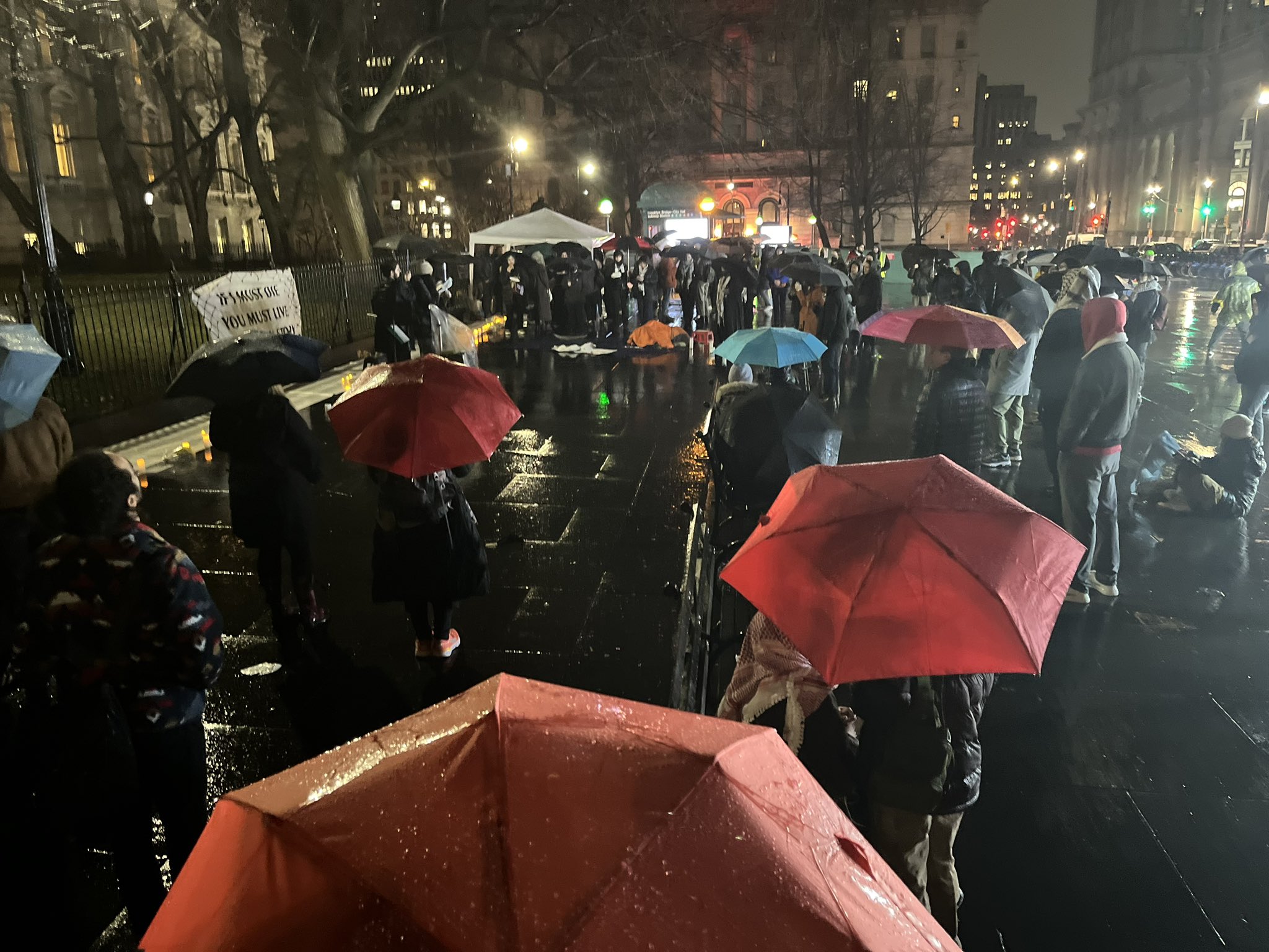 وخلال التظاهرة الاحتجاجية التي ستستمر 24 ساعة، حاول المتحدثون إيصال أصواتهم إلى عمدة نيويورك إريك آدامز، وأعضاء مجلس البلدية، ودعوا الولايات المتحدة إلى التوقف عن دعم الاحتلال.