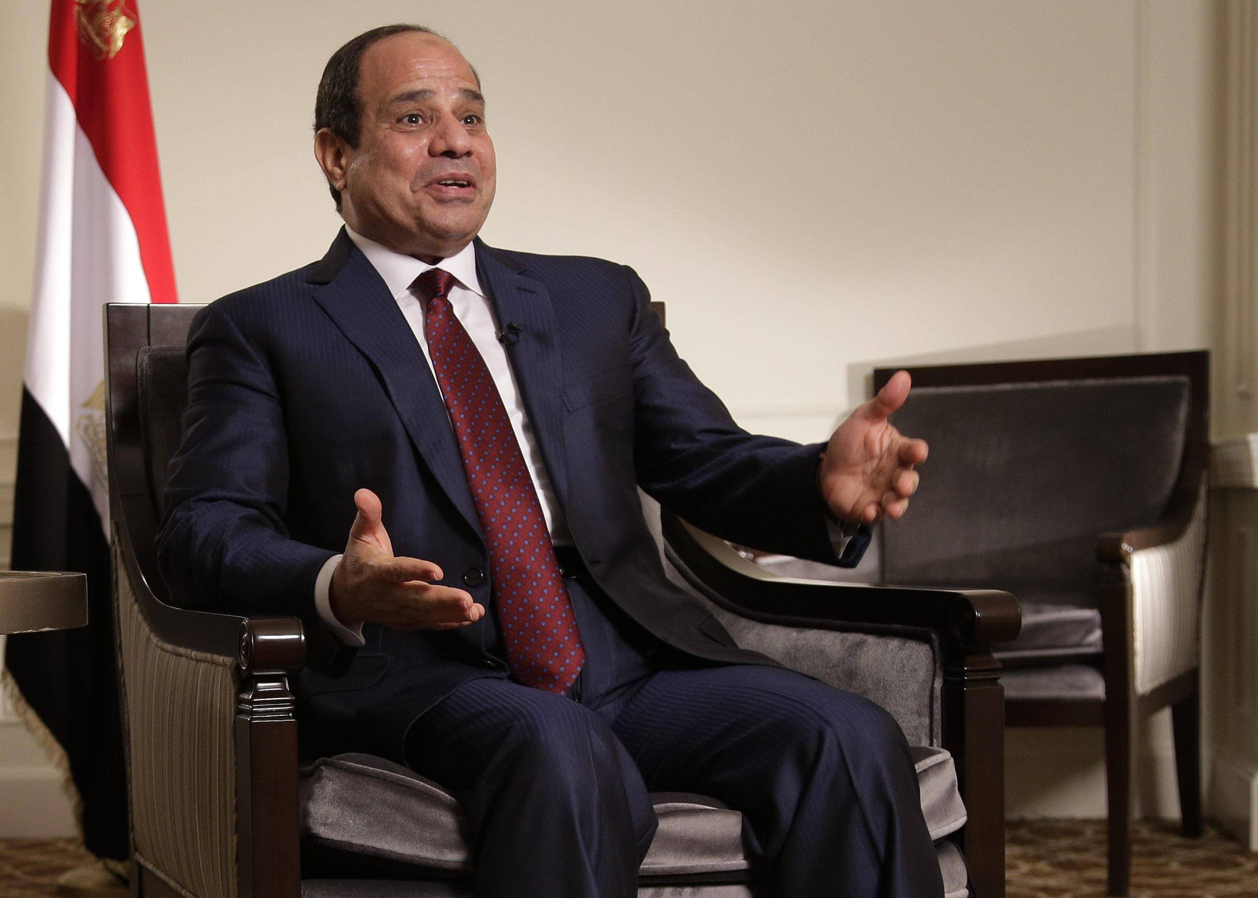 Egyptian President Abdel Fattah el-Sisi answers questions during an interview, Saturday, Sept. 26, 2015, in New York. Sisi discussed various issues including Egypt's role in the Middle East, his country's work on an expansion project to the Suez Canal, and relations with the United States. (AP Photo/Julie Jacobson)