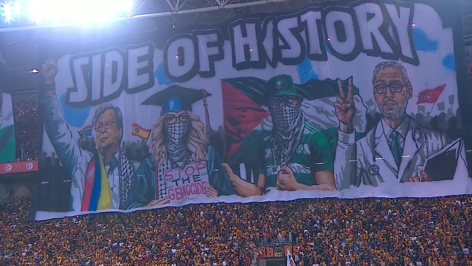 دعمت جماهير الترجي التونسي فلسطين بالهتافات والشعارات خلال مباراة فريقها مع الأهلي في ذهاب نهائي دوري أبطال أفريقيا.