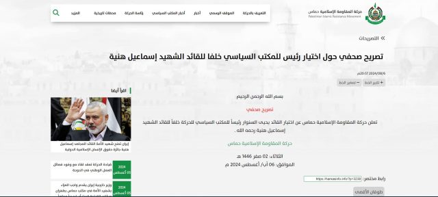 أعلنت حركة المقاومة الإسلامية حماس اختيار يحيى السنوار قائد الحركة في غزة رئيسا للمكتب السياسي للحركة خلفا للشهيد إسماعيل هنية.