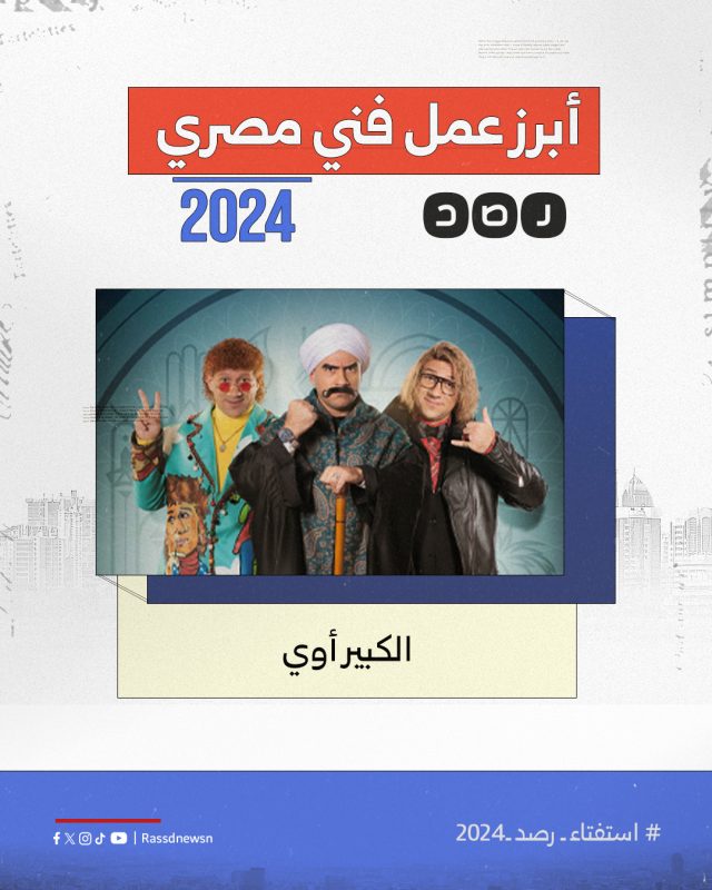 اختار جمهور المصوتين في استفتاء رصد 2024 مسلسل «الكبير أوي» كأفضل عمل فني مصري خلال العام بنسبة تصويت بلغت 37% ، فيما جاء مسلسل «أشغال شقة» في المركز الثاني بنسبة 18%.