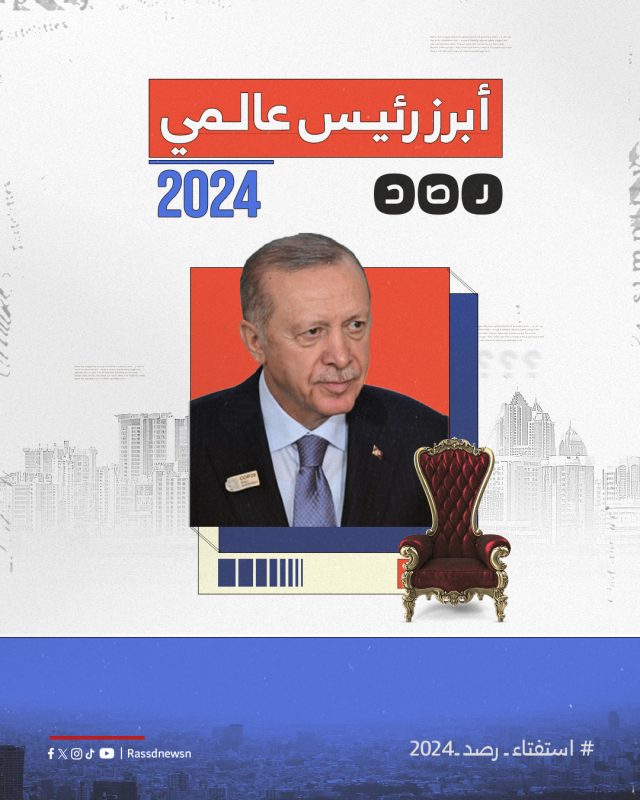 وجاء الرئيس التركي «رجب طيب أردوغان» بالمركز الأول كأبرز زعيم عالمي بنسبة تصويت 59%، والرئيس الروسي بالمركز الثاني بنسبة تصويت بلغت 18%، ورئيس جنوب إفريقيا «سيريل رامافوزا» بالمركز الثالث بـ10% من معدلات التصويت.