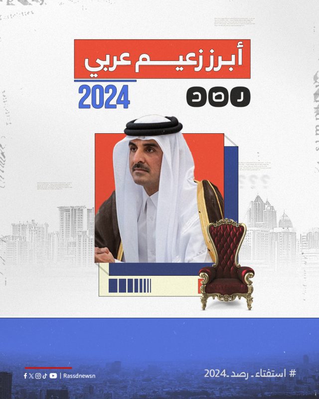 على صعيد اختيار الزعيم الأبرز عربيا، تصدر أمير دولة قطر«تميم بن حمد» نتائج التصويت كأبرز زعيم عربي بنسبة بلغت 74%.