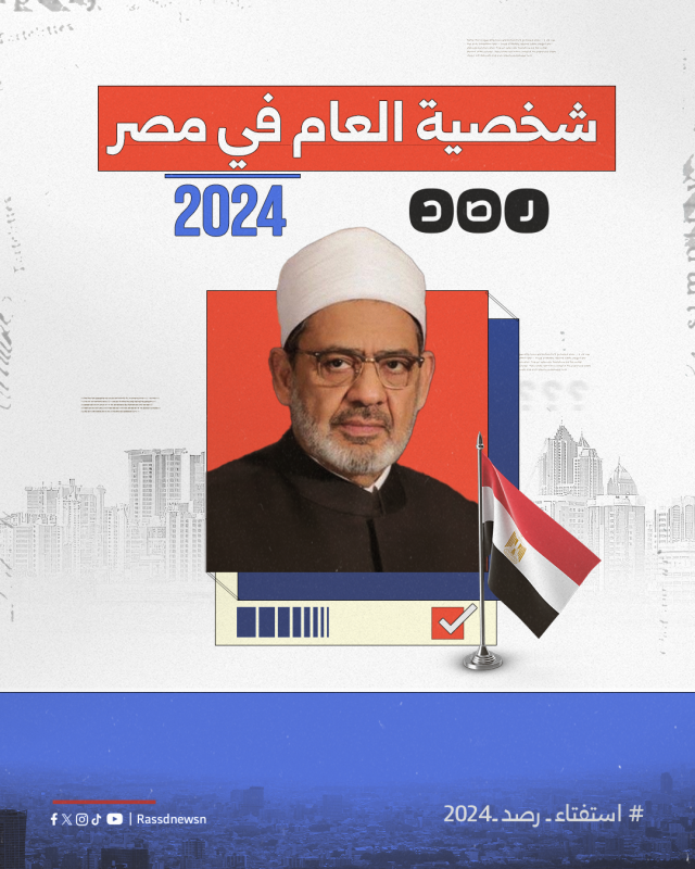 اختار آلاف ممن شاركوا في استفتاء رصد 2024 مرشحهم لشخصية العام في مصر شيخ الأزهر «أحمد الطيب»، بنسبة تصويت بلغت 46%، فيما حل السياسي المعتقل ومرشح الرئاسة السابق «أحمد الطنطاوي» في المركز الثاني بنسبة 45%.