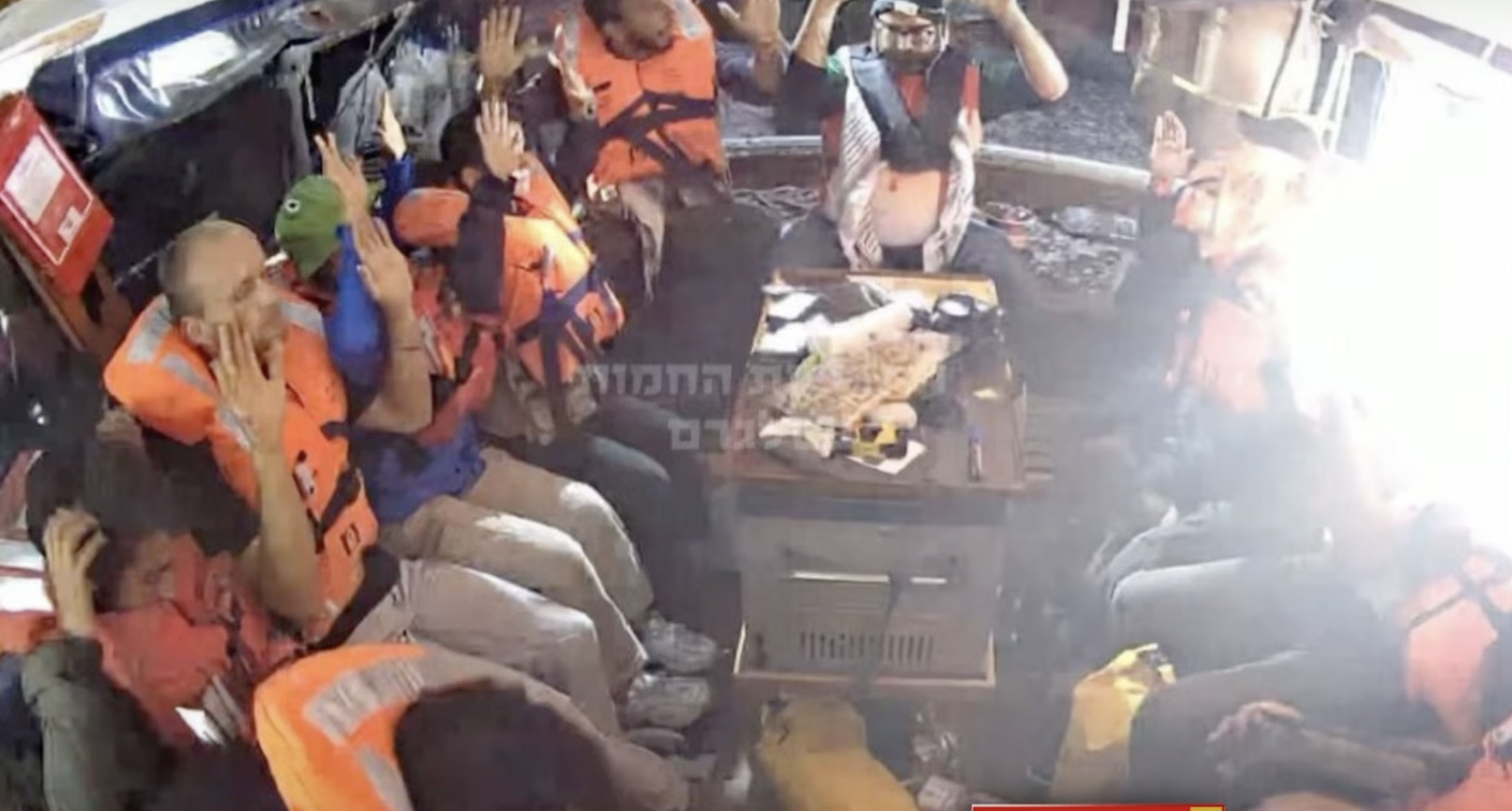 وأظهرت مقاطع مصورة لحظة اعتراض السفينة والسيطرة عليها من قبل قوات الاحتلال.