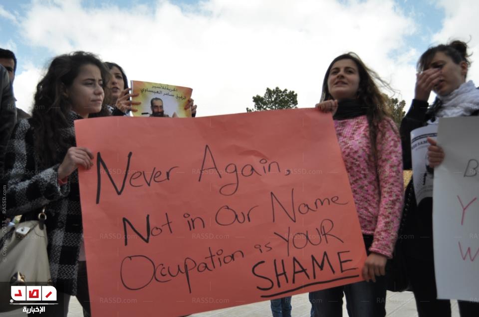 ورفع الطلاب صور للأسير الفلسطيني المضرب عن الطعام منذ 225 يوم "سامر العيساوي" وحملوا لافتات كتبوا عليها "لن نستقبل من أعطي وعد لمن لا يستحق في حيفا والقدس" ، "عار علي يدي إن صافحت يداً طوحت بأعناق شعبي"، "" لن نسمح بتدنيس حرم جامعة الشهداء من قبل هذا المجرم الذي ناصر العدوان الصهيوني على قطاع غزة".