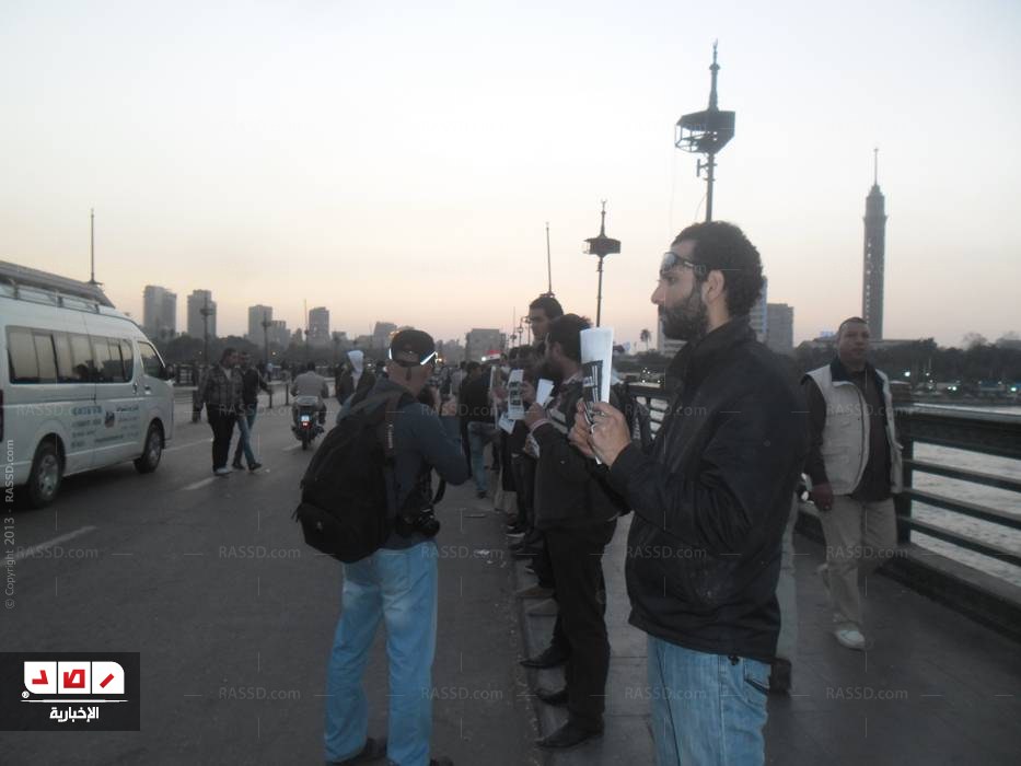 نظم العشرات من النشطاء سلاسل بشرية أعلى كوبري قصر النيل للدعوة إلى العصيان المدني والتضامن مع أهالي بورسعيد والمنصورة ومطالبهم بإسقاط النظام.