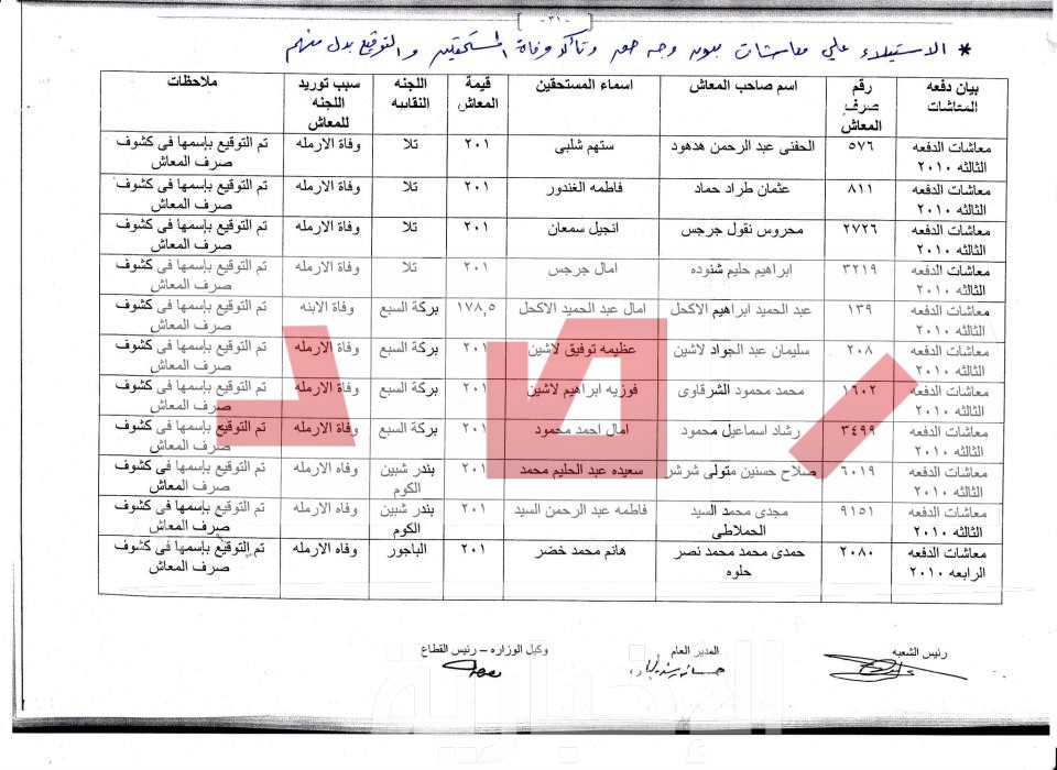 وأوضحت التقارير انه تم الرجوع إلى إدارة الأحوال المدنية بالمنوفية في 20 يناير من العام الحالي للكشف على مدى صحة أرقام بطاقات الرقم القومي المدرجة قرينة توقيعات الأسماء المدرجة بكشوف صرف التأمين الجماعي فأجابت بما يفيد عدم استحقاق هذه الأسماء للتأمين الجماعي .
