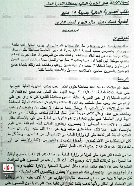 وقد وصل لشبكة " رصد " الاخبارية مستندات مقدمة لمدير المديرية المالية بمحافظة القاهرة للكشف عن قضية فساد وإهدار مال عام وفساد إداري ، تعد القضية ضد مسؤول هام في الوزارة الحالية ، تتلخص أهم نقاط هذه القضية فالآتي :