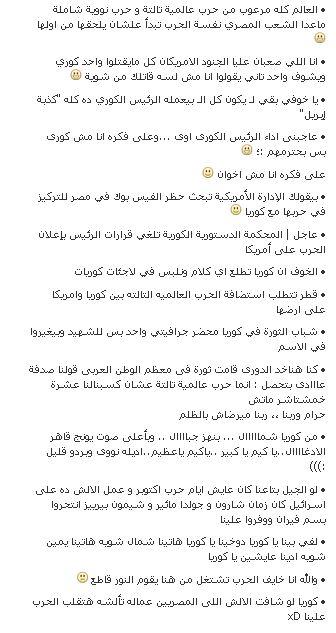 ويقول أحد القراء "الكوريين داقوا الظلم زينا انا هشجعهم عشان يحكموا العالم شوية بدل أمريكا واللي داق الظلم عمره ما يظلم , وعلى فكرة أنا مش كوري بس بحترمهم!"