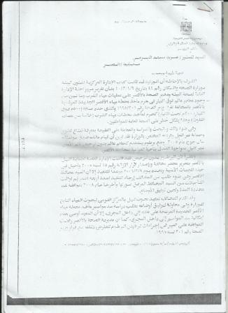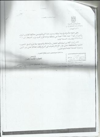 و فى يناير2012 قام وزير الرى الدكتور هشام قنديل في حكومة الجنزوي بمخاطبه المحافظ بخطاب طالبه باتخاذ ما يلزم لدى الاجهزة الأمنية بالمحافظه لتفعيل و تنفيذ قرارالازالة فى أسرع وقت حفاظا على نهر النيل وحماية للصحة العامة.