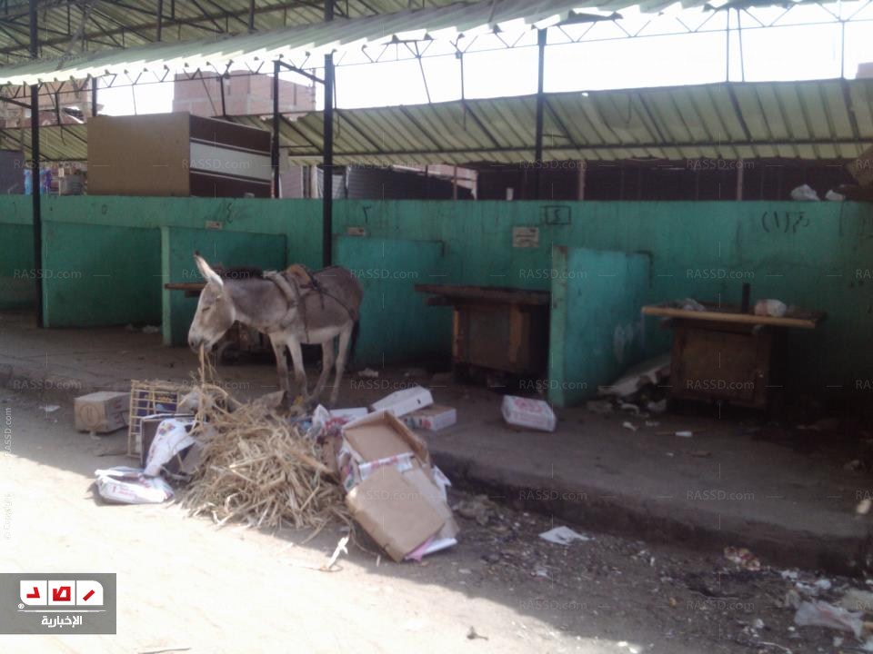 الحمير ترعي في السويقات المخصصة للباعة الجائلين