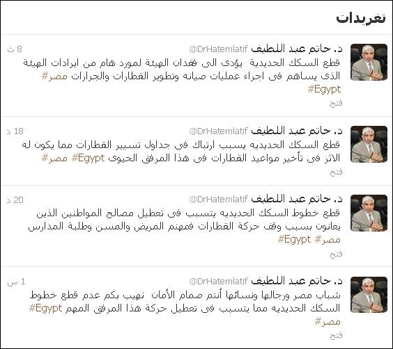 ناشد د. حاتم عبد اللطيف-وزير النقل- المواطنين بعدم قطع خطوط السكة الحديد .