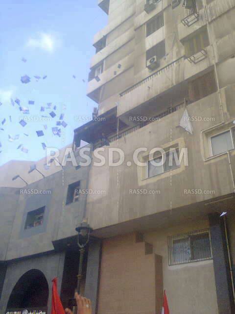 اقتحم المئات منذ قليل من المتظاهرين المعارضين للرئيس محمد مرسي وأضرموا النيران في عدد من الأوراق التي استولوا عليها عقب إقتحامهم المقر العام لجماعة الإخوان المسلمون بمنطقة سيدي جابر بالإسكندرية