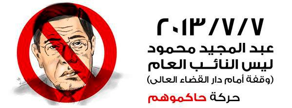 أطق بعض الشباب على موقع التواصل الاجتماعى " فيس بوك " اليوم الخميس حملة "حاكموهم" لمحاكمة و عزل النائب العام المستشارعبد المجيد محمود و ذلك بعد عودته اليوم لممارسة عمله كنائب عام .