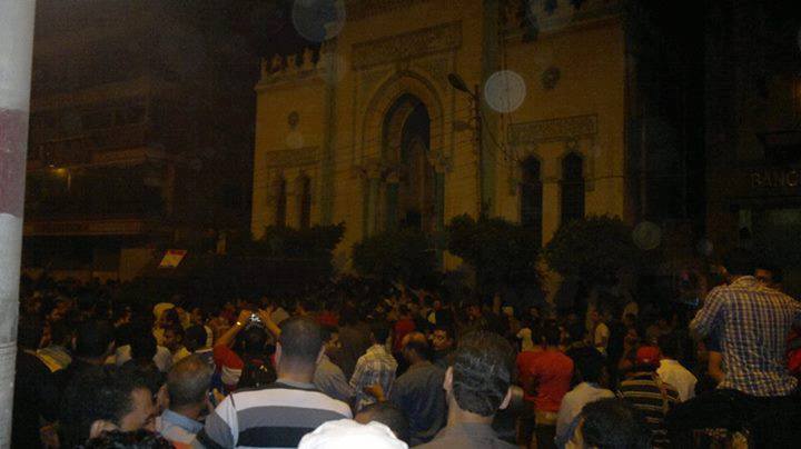 -الإخوان دلوقتي محاصرين في مسجد النصر اللي على البحر، جنب (تي إي داتا).. واقف على الباب شوية ضباط، والناس حواليهم بتهتف لهم