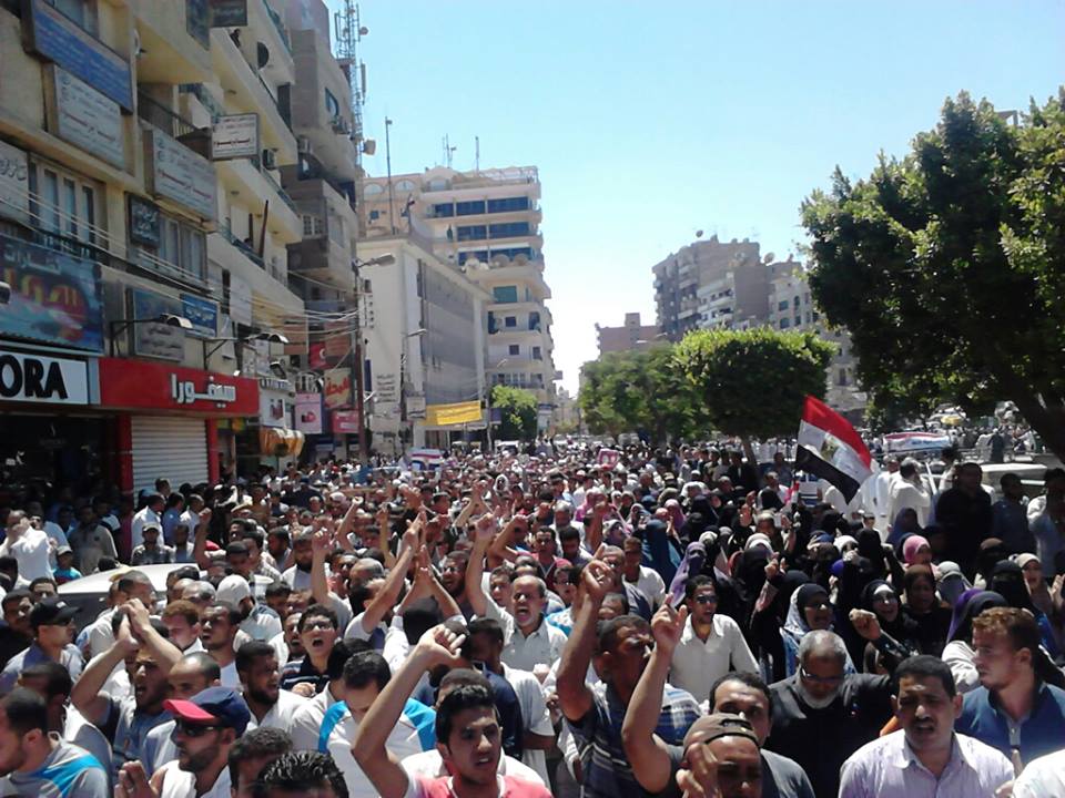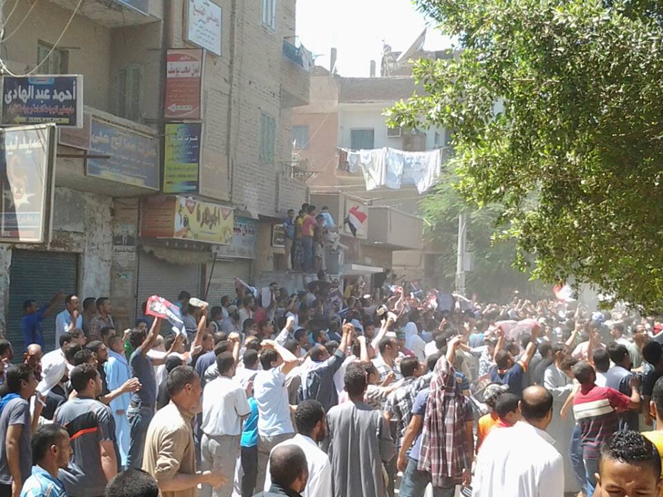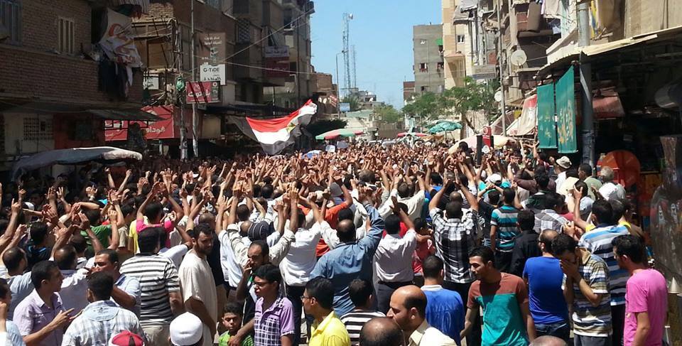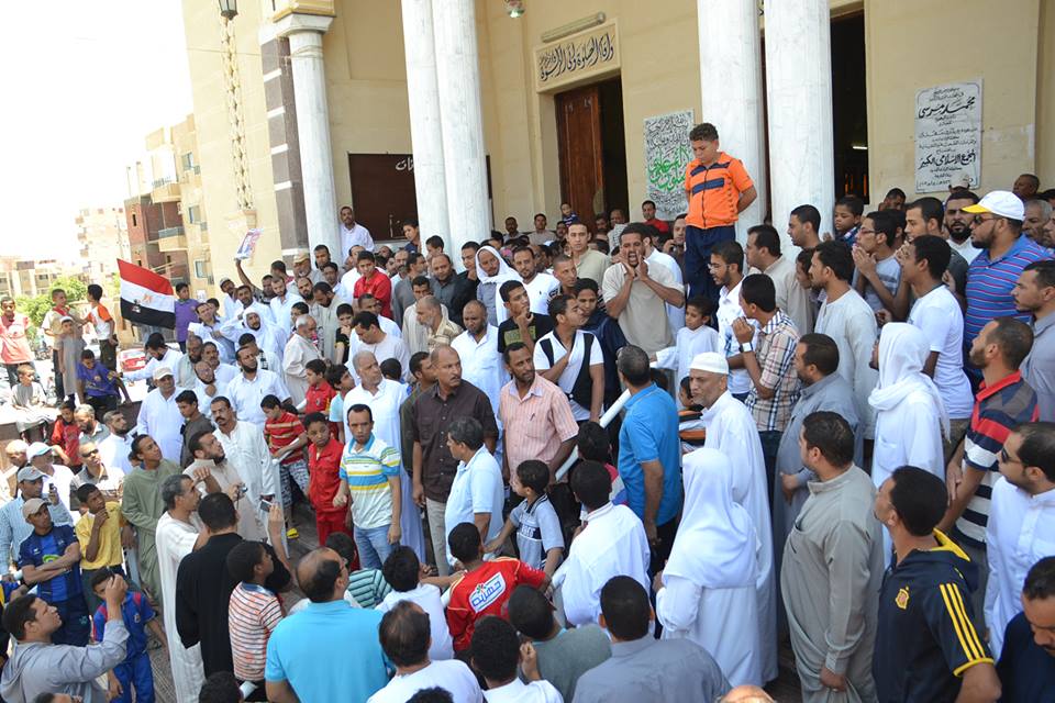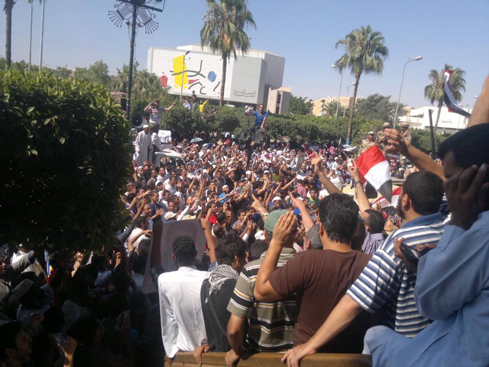 واحتشد المئات من مدينه الخارجه أمام المجمع الاسلامى الكبير بميدان الشعله لتأيد الشريعه والشرعيه ممثلة فى الرئيس محمد مرسي مطالبين بمحاكمة السيسي بتهمة الخيانه العظمى والمبايعه للاستشهاد فى سبيل نصرة دين الله.