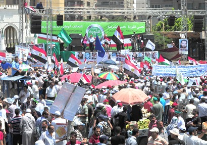 أحتشد الملايين من المتظاهرين اليوم عقب صلاة الجمعة فى القاهرة ومحافظات مصر للتنديد بالانقلاب علي الرئيس مرسي ودعم الشرعية.