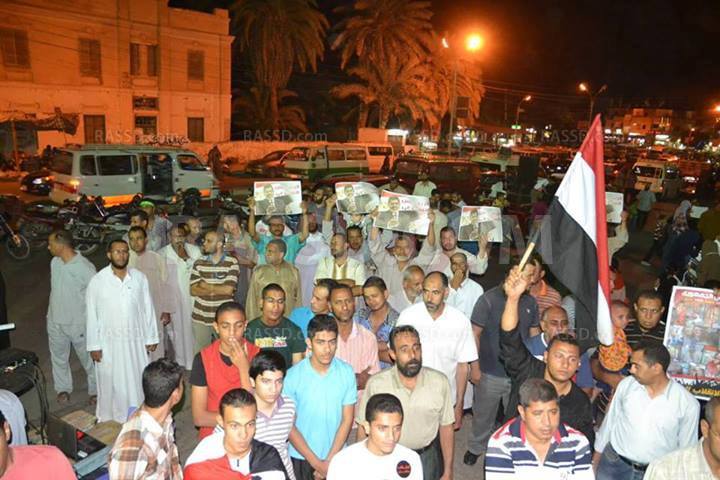 وكان عدد من رافضي الانقلاب العسكري ومؤيدي الرئيس محمد مرسي، قد تظاهروا عقب الانتهاء من صلاة التراويح، مساء امس ، في ساحة مسجد المجمع الاسلامى الكبير بميدان الشعله في مدينة الخارجه.