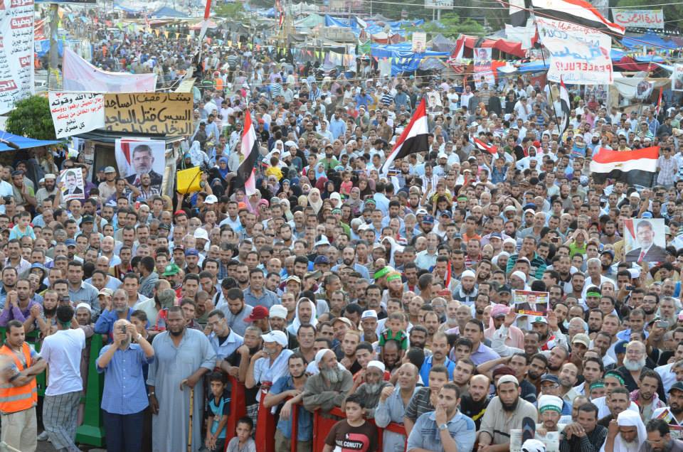 أما المعتصمون في ميدان رابعة العدوية فإنهم أقسموا أنهم لن يعودوا دون رئيسهم فتقول أية عصام إحدى المعتصمات "هنعمل كحك العيد وهنعيد سوا في الميدان" وغيرها كثيرون يؤكدون صمودهم في الميدان رغم التهديد بفض الاعتصام، خاصة بعد تصريحات وزير الداخلية التي تنص على فض الاعتصام بطرق قانونية !