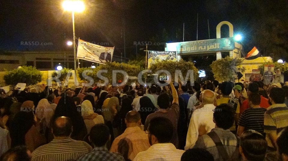 وحمل المتظاهرون صور الرئيس الشرعي محمد مرسي وصور شهداء المنصورة، كما هتفوا ضد حكم العسكر.