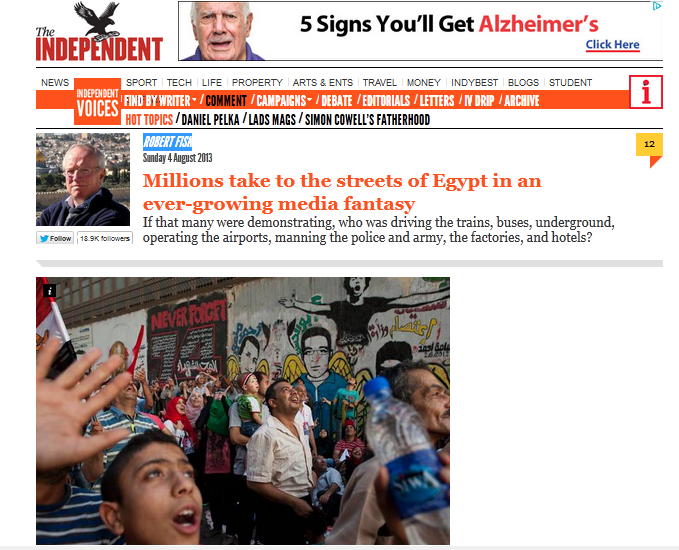 روبرت فيسك:خروج الملايين للشوارع خيال واسع من الإعلام
