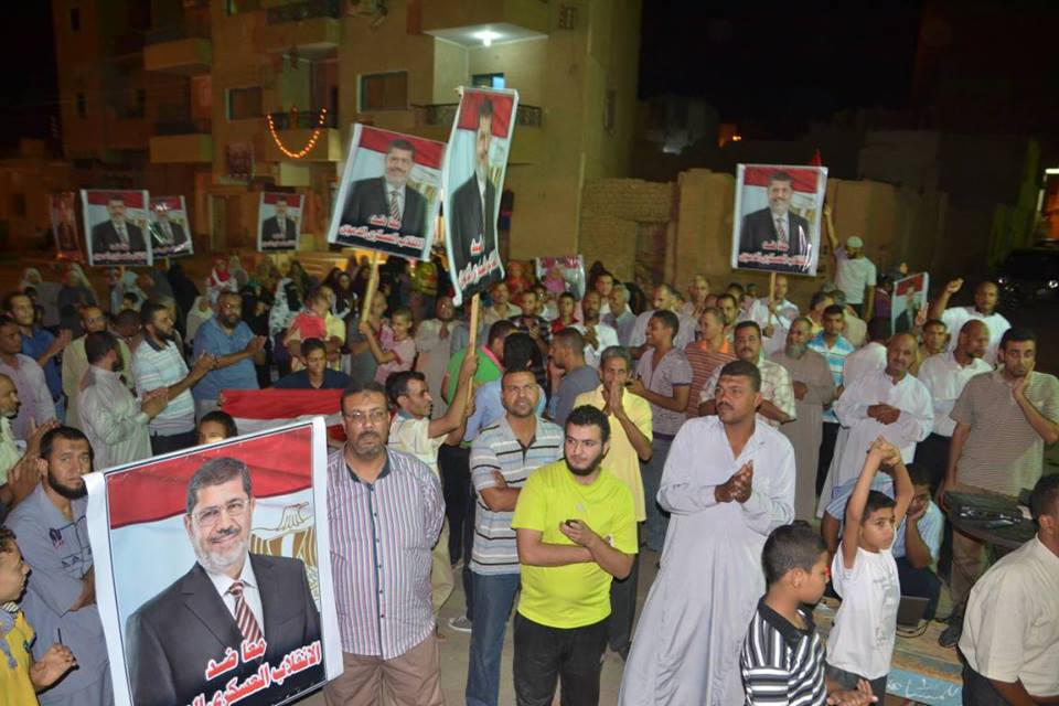 احتشد العشرات من مؤيدى الشرعية، ورافضو الانقلاب العسكري مساءأمس الثلاثاء بساحة المجمع الإسلامي الكبير بعد صلاه التراويح بمدينة الخارجة.