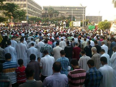 أدي المتظاهرون الرافضون للأنقلاب العسكري والمؤيدين لشرعية الرئيس محمد مرسي اليوم صلاة العيد بميادين الاعتصام المختلفة فى رابعة العدوية والنهضة ، وميدان المديرية ببني سويف ، ومسجد سيد الشهداء بالسويس، ومسجد النصر بمدينة العريش، ومسجد الصالحين بالسماعيلية ، ومسجد التوحيد ببورسعيد ، ومركز طامية محافظة الفيوم ، وميدان الثقافة بسوهاج وساحة سامي الجمل بالمنصورة ، مسجد القائد إبراهيم بالأسكندرية وأنطلقت بعدها مسيرات حاشدة في عدد من الميادين لرفض الانقلاب والمطالبة بعودة الرئيس محمد مرسي.