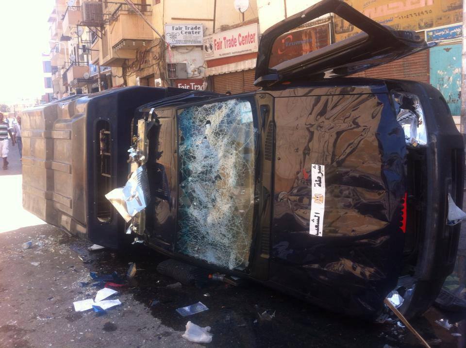 و كرد فعل قام بعض الشباب المناهض للانقلاب بحرق عربيات تابعة للأمن المركزي احتجاجاً على عودة الأوضاع في الأمنية في مصر لسابق عهدها من الترهيب و العنف المفرط في حق المتظاهريين السلميين على مختلف توجهاتهم .