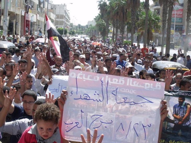 خرج أهالي برج العرب اليوم (الجمعة) ضمن فاعليات جمعة الشهداء ضد الانقلاب التى دعا لها التحالف الوطنى لدعم الشرعيه بالإسكندرية عقب الصلاة.