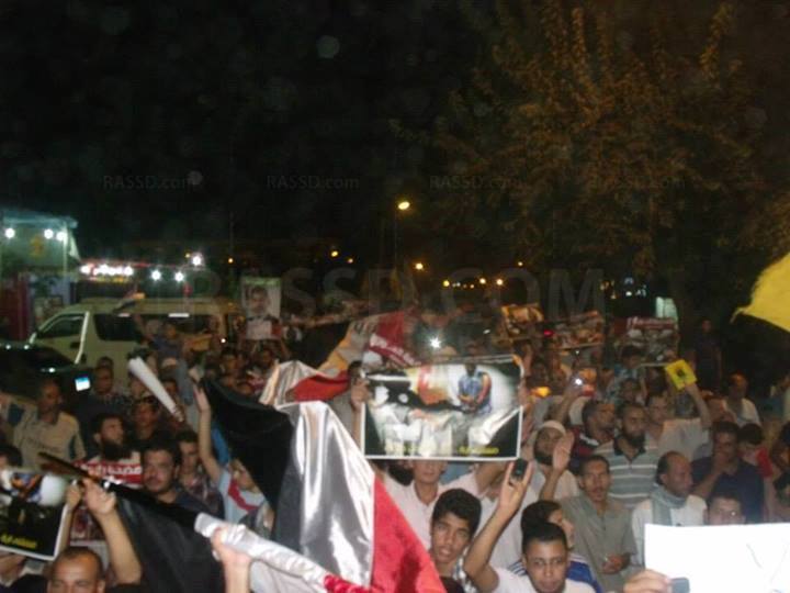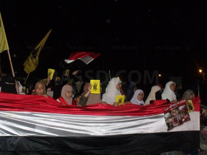 ورفع المتظاهرون علامة النصر رابعة، وصور مجازر فض الاعتصام، وتاريخ أمس للرد على أدعاء الإعلام بتوقف تظاهرات مؤيدي الشرعية.
