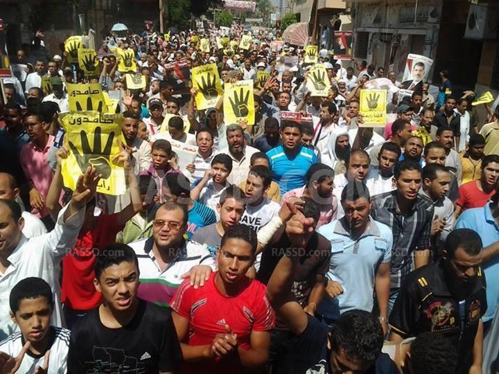كما انضمت المسيرات الثلاث وتجمعت مع بعضها وتوجهت نحو فابريقة ببا وسط هتافات يسقط يسقط حكم العسكر والشعب يريد اعدام السفاح.. السيسي عاوز ايه عاوز الشعب يبوس رجليه.. لا يا سيسي مش هنبوس بكرة عليك بالجزمة ندوس.. والشعب يريد إسقاط الانقلاب.