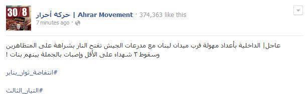 تدوينة على صفحة أحرار حين بداية إطلاق النار
