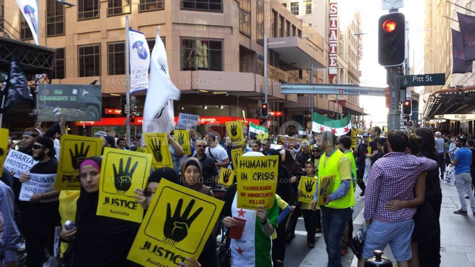 يتظاهر الآن المواطنين في استراليا ضد الانقلاب العسكري، ومجازره.
