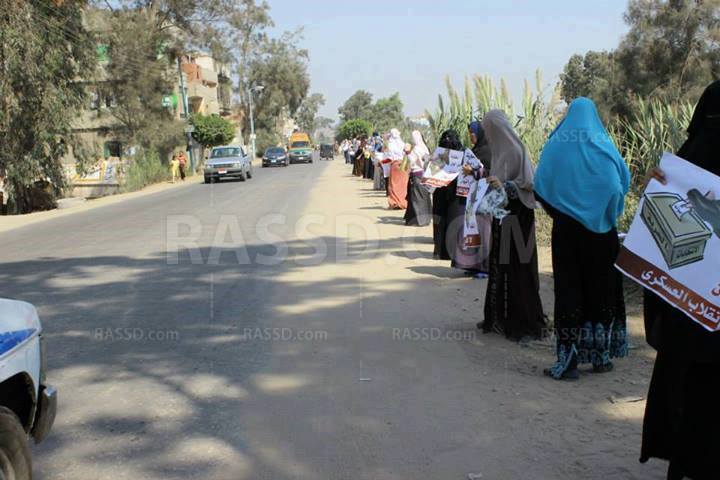 سلسلة بشرية على طريق دكرنس المنصورة ضد الانقلاب