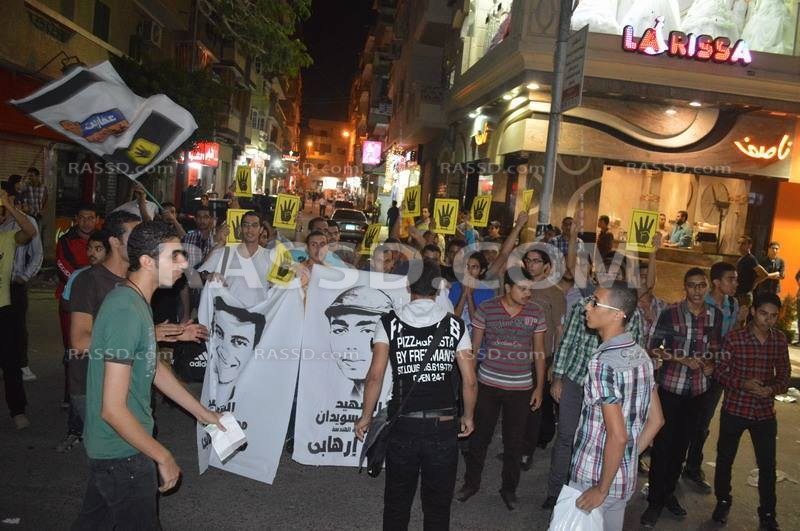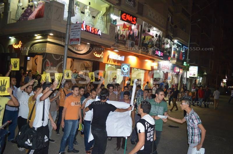 أقام الليلة شباب حركة عفاريت ضد الإنقلاب مظاهرة بمدينة دمنهور حيث هتفوا منددين بحكم العسكر و مذبحة  فض رابعة رافعين أعلام لشهداء المذبحة من زملائهم الشباب